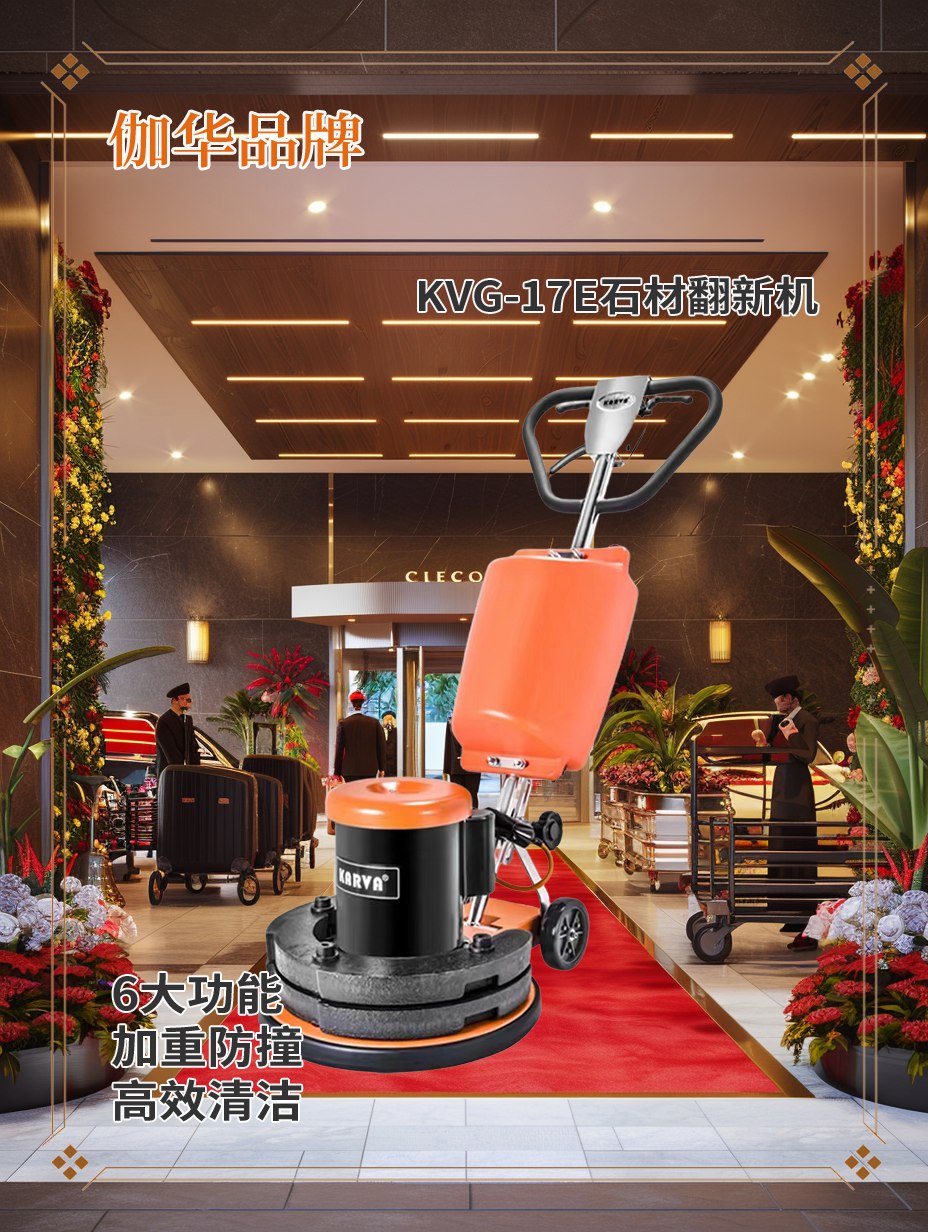 综合比较大酒店的石材方法技巧,伽华推荐使用晶面机产品型号为:KVG-20E伽华20寸晶面机。