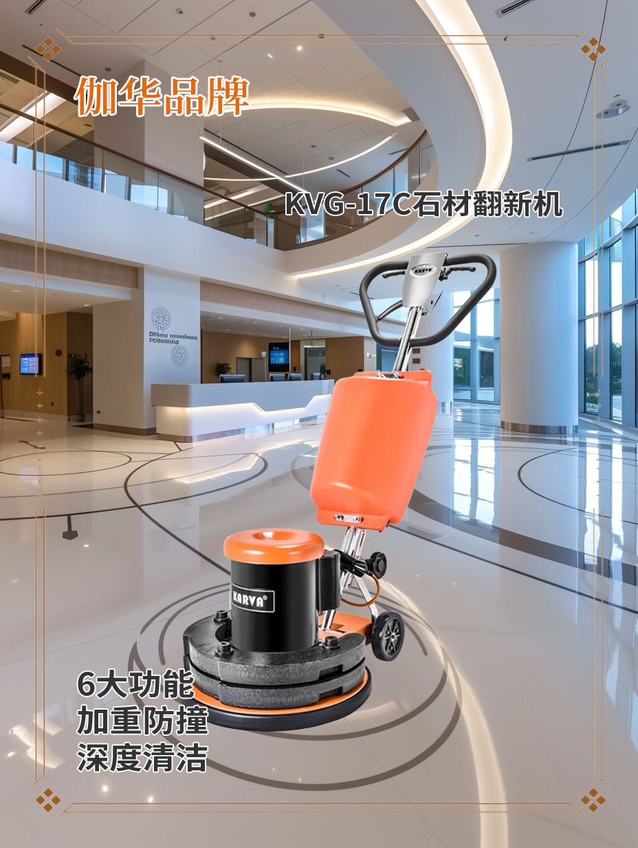 在李女士的实际操作中,伽华的KVG-17C不仅显著提升了抛光效率,还减少了因操作不当导致的地面损伤。酒店的地面恢复了昔日的辉煌,客户满意度也随之提高。