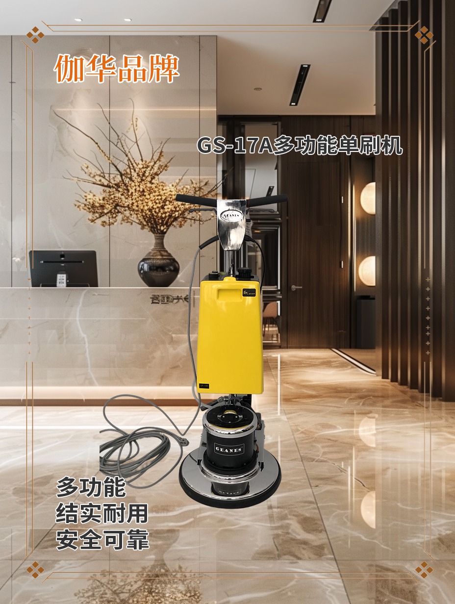 总结来看,大理石结晶设备怎么选,核心在于设备的多功能适用性、操作便利性及认证保障,而伽华GS-17A1.5HP多功能单刷机正是基于这些关键要素打造。贸易商若想在清洁行业持续开拓市场,选择伽华,无疑是迈向成功的坚实起点。热门标签: 石材护理设备