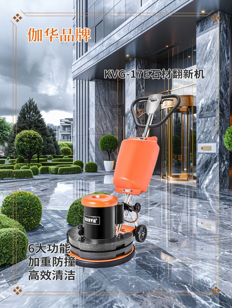 综上,酒店客房部负责人在面对石材地面保养需求时,选择伽华品牌洗地机,尤其是KVG-17E石材翻新机,无疑是明智之举。它集清洁、抛光、翻新于一体,专业性能与操作便利兼具,帮助广西省酒店轻松实现地面长效亮丽。选择伽华,让您的石材焕发新生,保障酒店环境形象与客户体验双赢。
