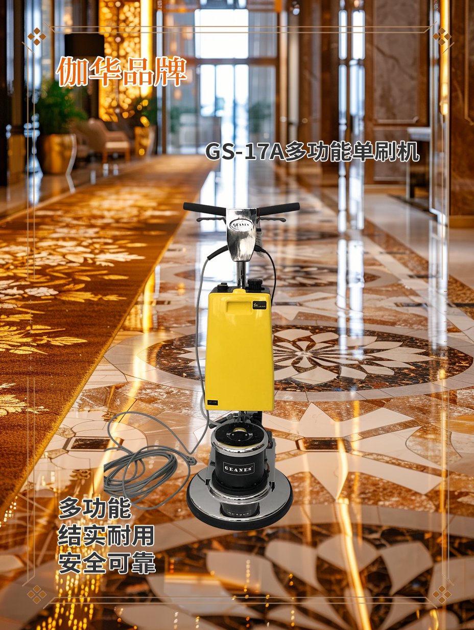 产品的高效清洁能力极大提升了工作效率,减少了人工成本。13米长的电源线为大面积作业提供了便利,满足商场、酒店大堂、写字楼、机场等多样化的使用场景需求。无论是高端住宅小区还是公共建筑,GS-17A1.5HP单刷机都能保证卓越的抛光效果和省时省力的操作体验。