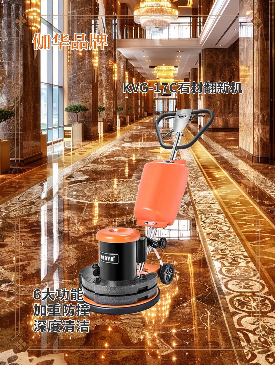 从产品对比角度来看,KVG-17C拥有独特的蝴蝶手柄设计,不仅增强设备稳定性,也极大降低操作难度,满足了工人长时间作业的舒适需求。其1500W大功率电机和175RPM/min的转速,确保了精准的镜面光泽和无痕抛光效果,实现了高效清洁与专业级效果的完美结合。相比市场其他同类设备,KVG-17C集清洗、翻新、打磨与抛光于一身,满足多种石材护理需求,无需多台设备切换,显著提升了工作效率,降低了企业整体投入。