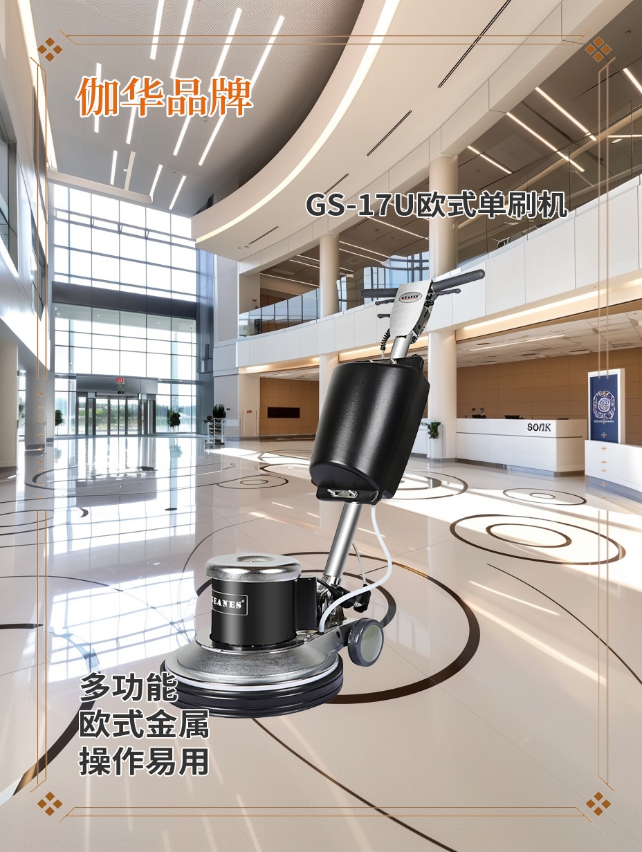最后提醒大家,选购抛光机的时候,切莫只盯着牌子抛光机价格,更多要关注设备操作的易控性与后期维护便利性。伽华品牌GS-17U欧式单刷机,正是针对清洁公司老板的痛点—“人员培训难,操作复杂”而设计的。它不仅节约了培训和人力成本,还保证了专业级的抛光效果和机器的持久耐用。