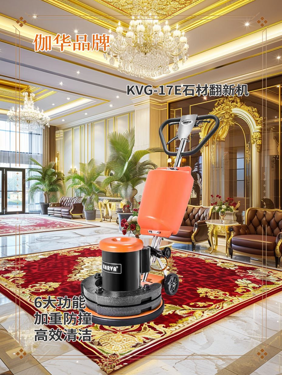 选择石材护理设备,往往关注的是效率和效果:能否在短时间内实现持久的镜面光泽?能否改善表面划痕和磨损,提升客户对酒店环境的整体印象?KVG-17E拥有1800W强劲电机和175RPM的转速,配合17寸底盘,确保抛光均匀且精准,真正做到无痕处理。这不仅能节省大量人力和时间,还能极大降低维护成本和设备替换频率,岂不是每位酒店管理者梦寐以求的高性能方案?