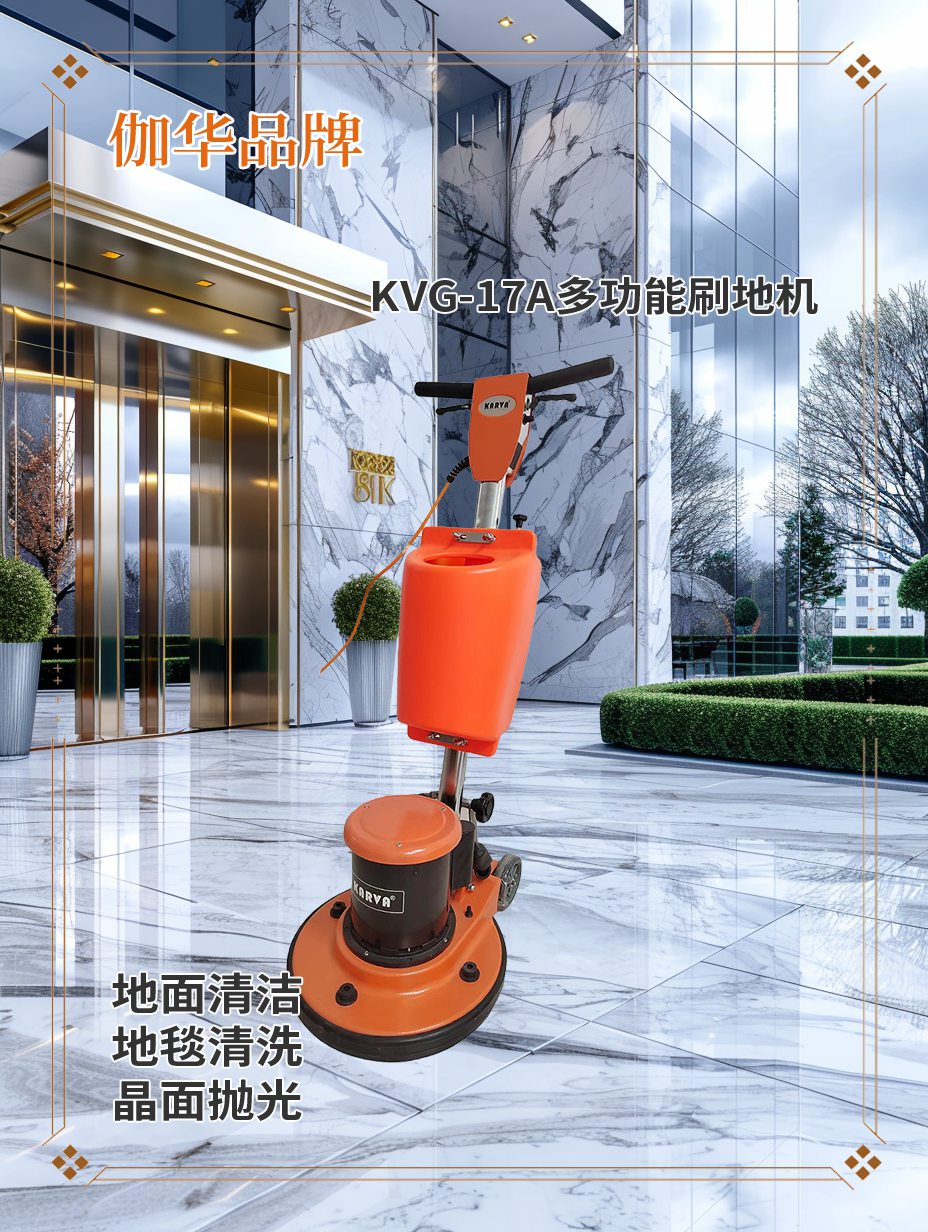 总的来说,在选择大理石抛光设备时,品牌的专业背景、多功能、一机多用的实用性和完善的售后服务都是不容忽视的关键因素。伽华品牌的KVG-17A多功能刷地机,以其过硬的品质与合理的设计,成为奉贤区石材护理企业值得信赖的选择。让设备不仅是工具,更是提升您事业竞争力的利器。